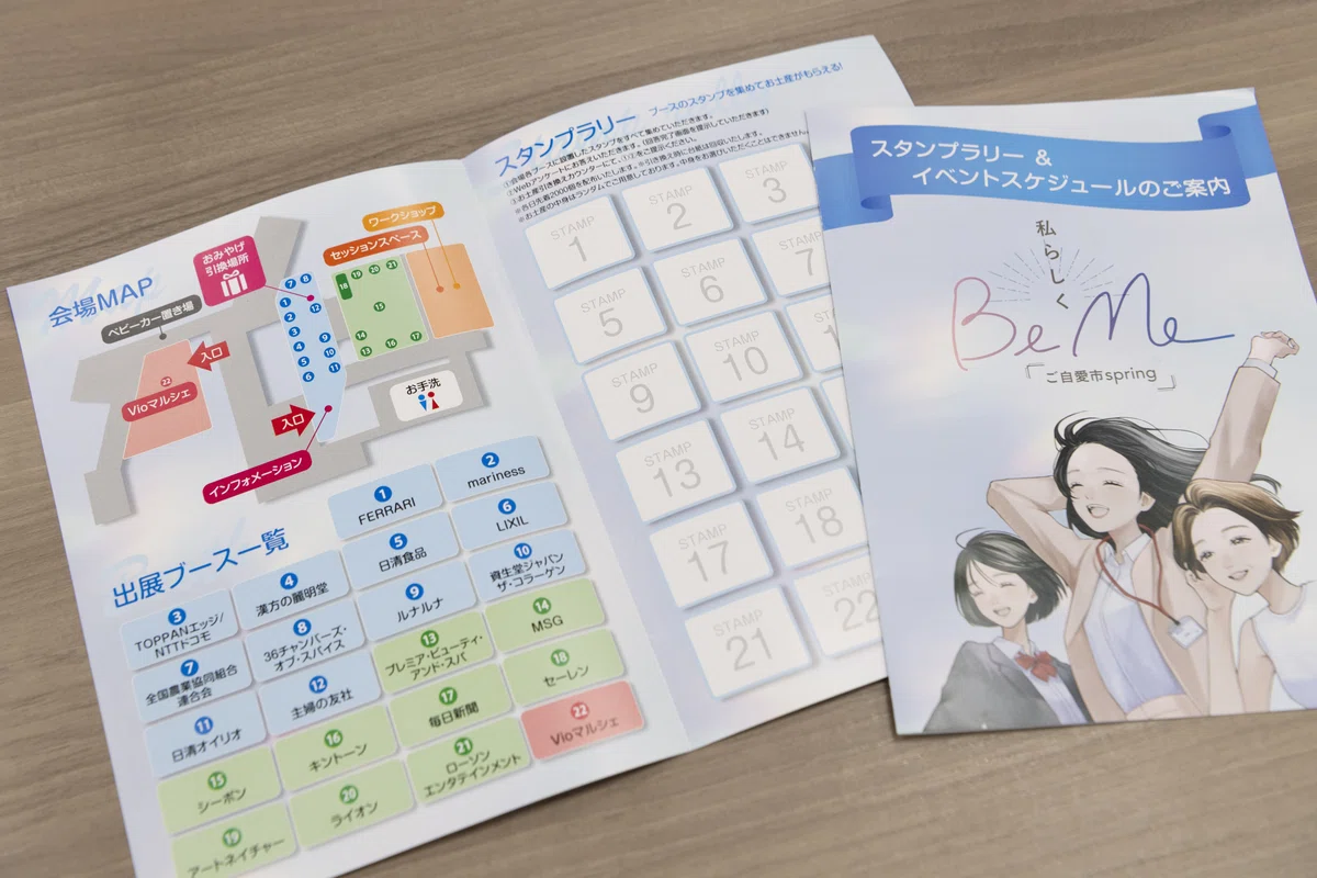 来場者は受付で配布された「会場マップ兼、スタンプラリー台紙」を持って、会場内を回遊。各ブースで展示をみたり、アンケートに答えるなどして、全てのスタンプを集め、イベント全体のアンケートに回答後、協賛企業の商品・オリジナルグッズなどのおみやげを受け取ります。