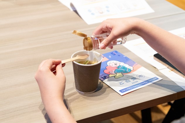 今回、各ブースで展示を見たり、アンケートに答えるなどして、スタンプを集めた方にプレゼントしたスペシャルギフトがこちら!協賛企業の人気商品や新商品のサンプル、オリジナルグッズなどからランダムに詰め合わせ、お渡ししました。うれしいお土産が好評!